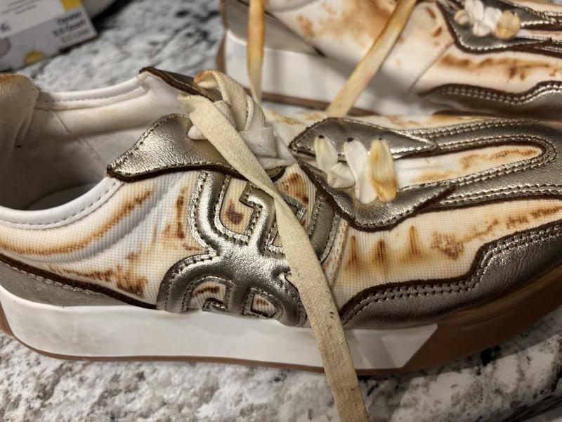 Purchased 1 month ago. Shoe didn’t come with care instructions. Tried cleaning them and this what happened. There’s no information on product details that the shoe is not machine washable or requires some other type of professional care or treatment to clean.