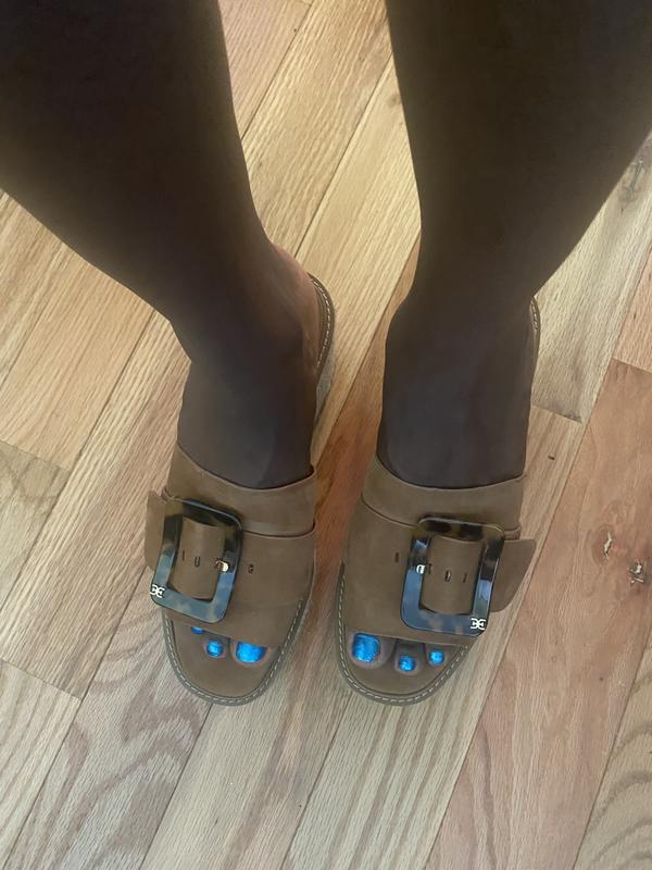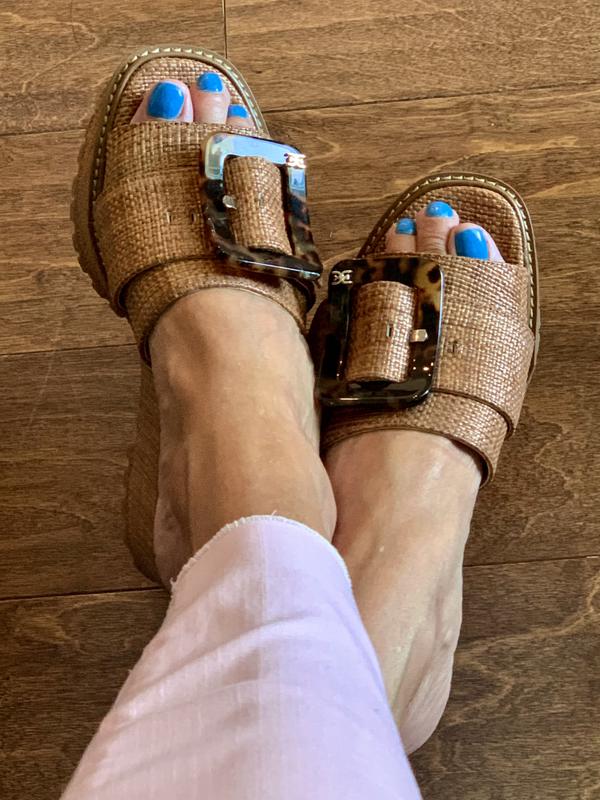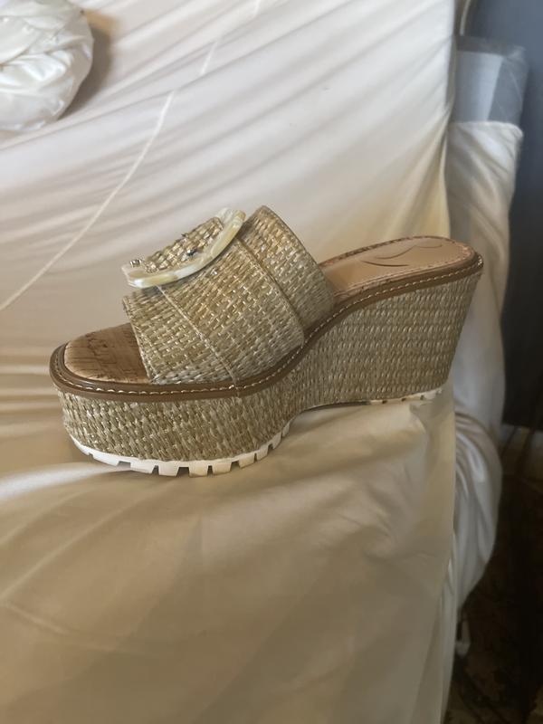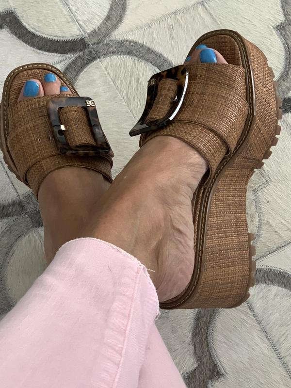 A beautiful look. This is not a comfortable platform for walking. The footbed need more cushion. I like wearing this shoe it looks cute on my feet.