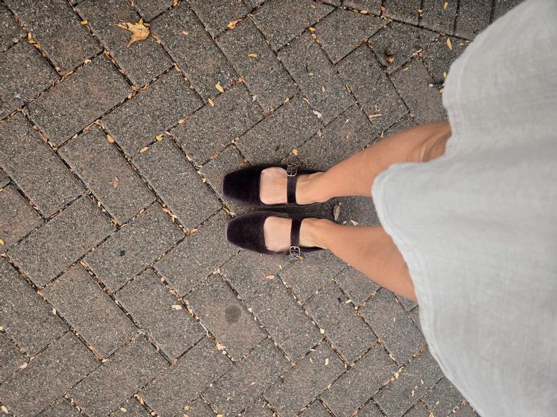 I love these ballet flats! They are so comfy and I walked miles in them at a museum! I love the chocolate brown velvet with gold accent for fall. They are the perfect comfy shoe for any night out if you don't want to wear heels!