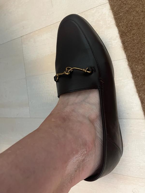 Nice quality shoe in a beautiful chocolate brown. Perfect for pants and jeans. The detail metal makes it dressy. They do run a little small. Easy in and out and made for city walking.