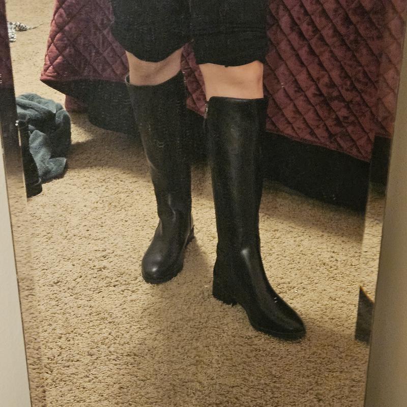 I've struggled my entire life to get tall boots that didnt have such a big calf gap. With skinny legs but long feet (size 11), it was inevitable and embarrassing. For a while I gave up, then searched again to find these boots. They fit perfectly! The material takes 2-3 wears to not be so stiff, and then they are very comfortable. I absolutely LOVE these boots!