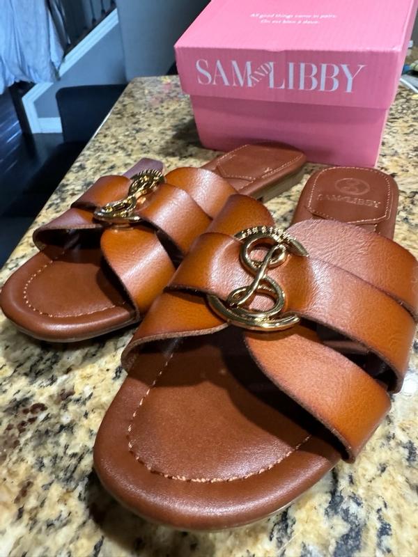 Sam & Libby women sandals are very comfortable and go with everything but they do run a 1/2 size to a full size wide.