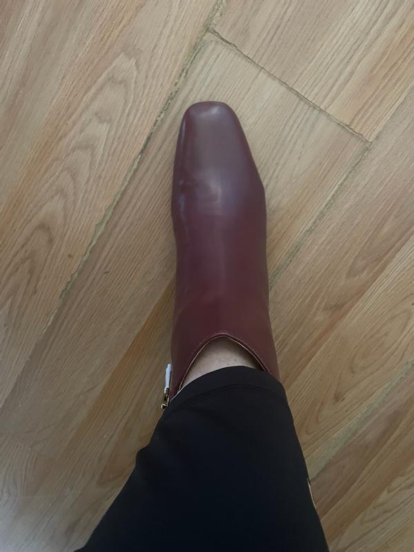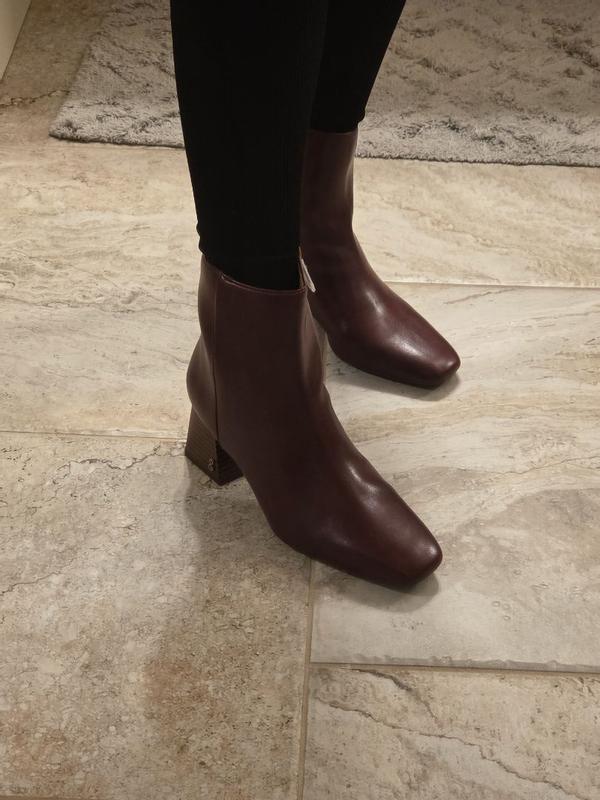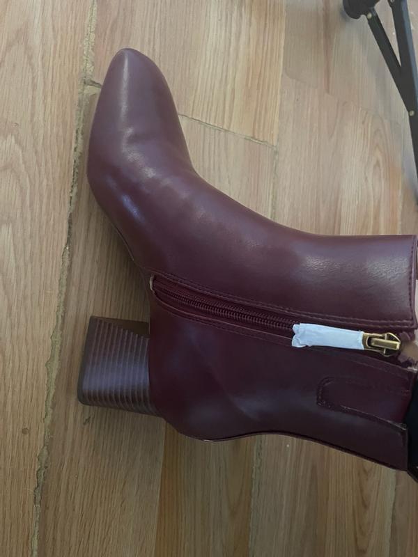 Okay, I have to talk about these Sam & Libby Yuliana Ankle Boots! I got them in the Swiss Mahogany color, and I am absolutely obsessed. Seriously, the color alone makes these feel so expensive and high-end—it’s this deep, rich wine/burgundy shade that works like a neutral but has way more personality than plain black. I was a little nervous about the heel, but it’s a perfect stacked block heel that's comfortable for running errands all day. It gives just the right amount of height without making my feet ache. The pointed toe gives them a really polished, sharp look. They look amazing dressed down with black leggings or denim, but they're also chic enough to wear with trousers for a work look. If you need a versatile, comfortable, and seriously gorgeous boot for the season, look no further. The Swiss Mahogany shade is the move!