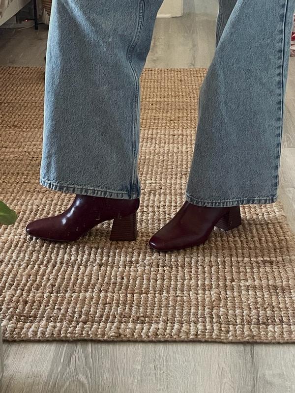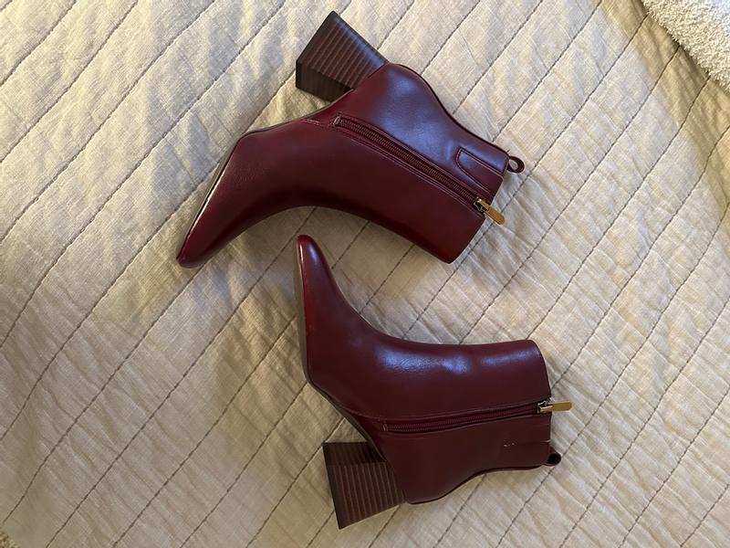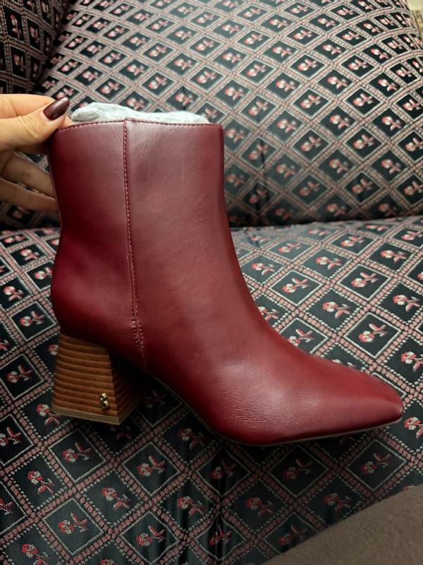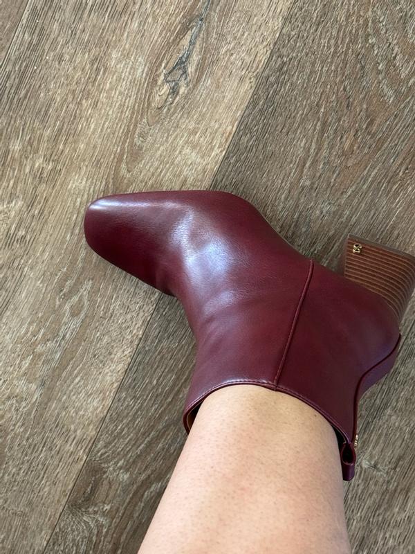 The Sam & Libby Yuliana Swiss Mahogony boots are a stylish & beautiful boot with a wide block heel that gives great stability to the shoe. It has an easy zip Code closure on the side and looks great with boot cut jeans or can be worn with wide leg cropped jeans too. Will definitely be wearing a lot!