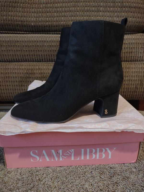 I love these boots!! I'm not a high end shoe consumer, but these sure made me feel fancy! They were packaged so nicely with lots of shaping tissue, even down to a protective tissue on the zipper to maintain the look of the boot. I adore the little gold Sam & Libby accents are the black boot. (Even on the bottom of the shoe!) There is a small amount of meshy give to help your foot slip in easier. I'm usually an 8.5 wide (maybe even closer to 9 after pregnancy) and I requested a size 8.5 regular. It took a small amount of breaking in and a bit of pain initially but I wore them out all day yesterday now with zero pain. I also love that they are not made of any animal products as I'm a big advocate of zero animal cruelty. I would definitely look into this brand in the future! I was incentivized by Influenster and Sam & Libby in exchange for my honest review.