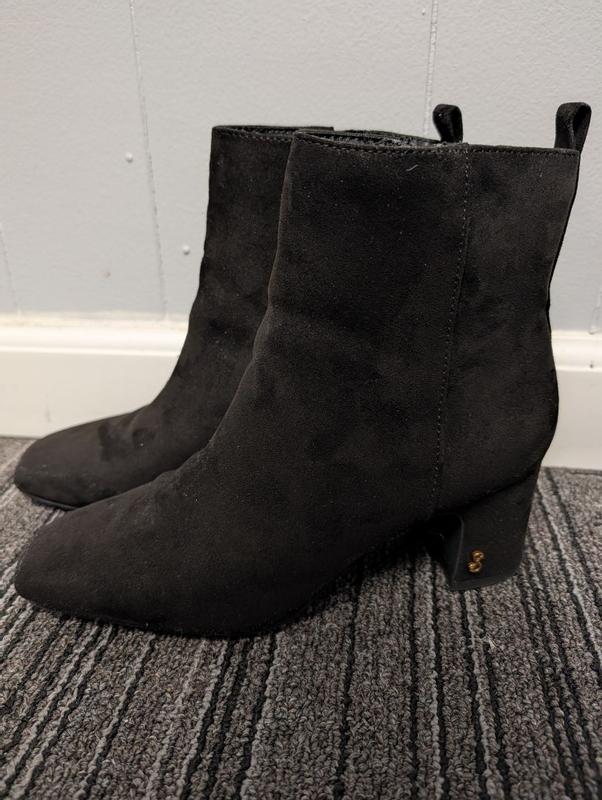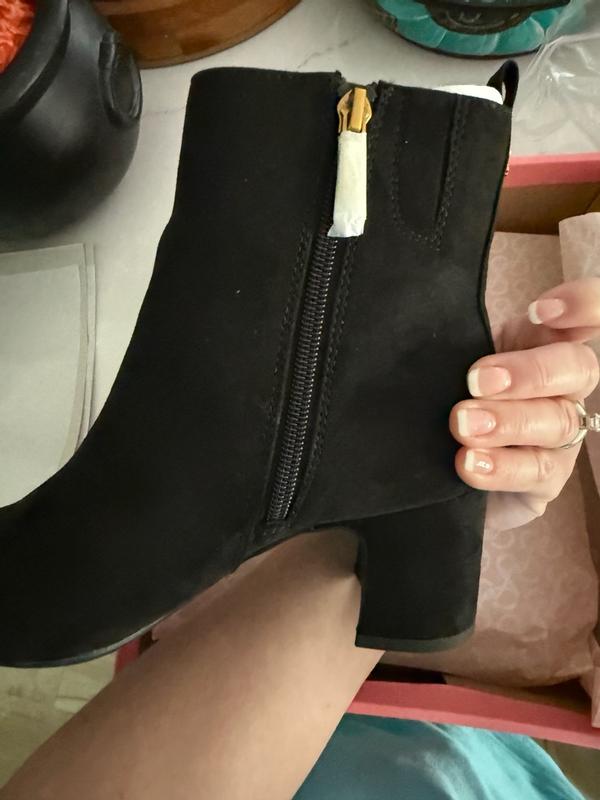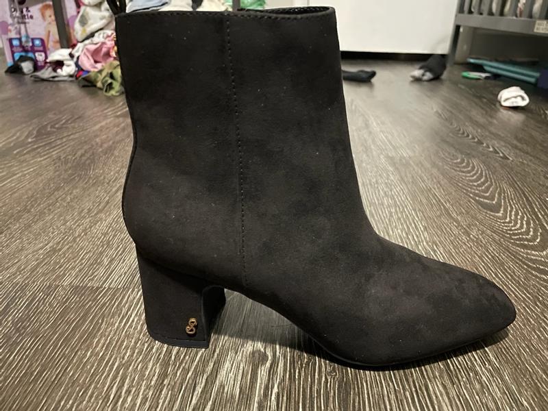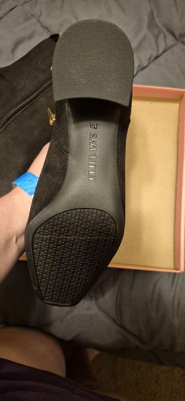 Elegant ankle boot with a slick simple design the quality is great as expected from Sam & Libby. Aspects of boots as far as sole it's not slippery it does make noise as if you are wearing heels the width of the toes is more on the narrow side material could be a little more flexible in the upper foot part near ankle . Comfort and support lacks a little bit but it is super beautiful great quality shoe