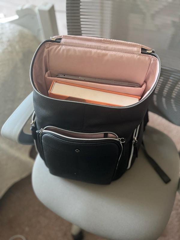 This bag is everything I wanted! It is large enough to accommodate everything needed for a work day (laptop, notebook, lunch, water bottle, and more) without feeling bulky. It looks professional and it feels very sturdy. It stands up on its own and has plenty of storage. My one thought is that it could have more small pockets inside the main space but I can get around that with small bags or an organizer within the backpack. Overall it’s a great purchase that I am very happy with!