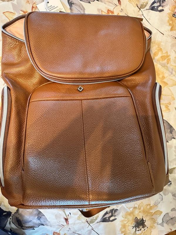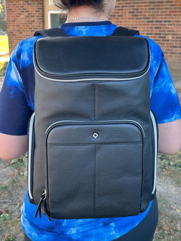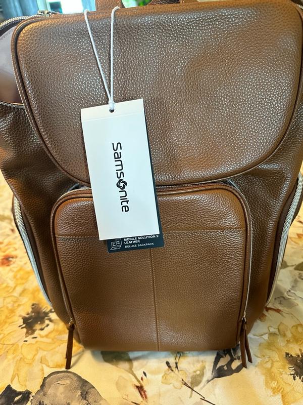 Samsonite Mobile Solution 2 Leather Deluxe Backpack is a must have for traveling. I used this as my carry on while traveling to Mexico and it was perfect. With convenient front, side, and interior pockets, it fit all my carry on needs and then some. This backpack can be used by anyone and I love how stylish it is. I also used it while exploring the city, during my travels, and it fit all my purchases nicely. It is not too big or bulky and it rests on the shoulders comfortably. It is made out of high quality materials and will last me for many vacations to come! Also, it has a strap on the back that easily slides over the handle of my suitcase, for easy airport maneuvering. I will definitely recommend this to all my traveling companions.