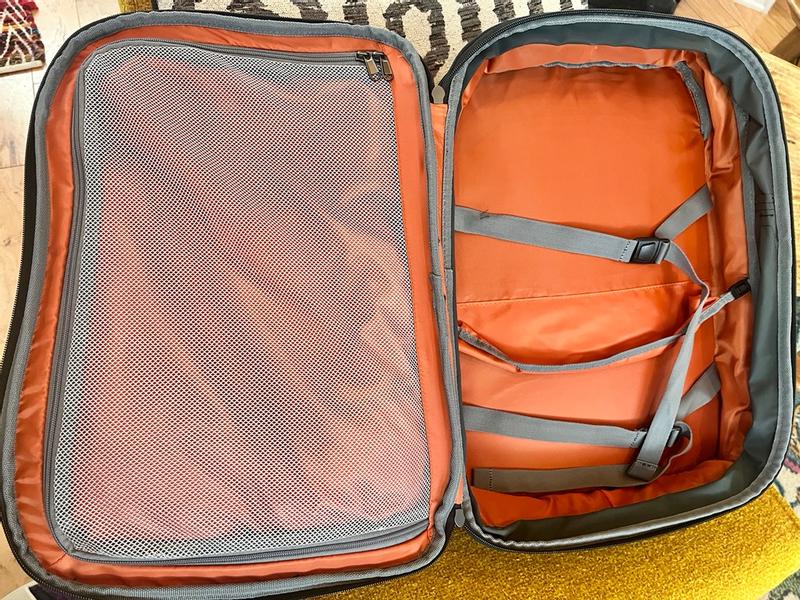 Purchased this recently on sale for a 3 week trip/cruise in Europe. Husband has the E-Bag version and used it for the last three-year trips and is very happy with it. I replaced my smaller, similar backpack with this. It has more storage, convenient pockets and better organization. Not heavy. You can utilize the space for smaller things that you don't have time to be looking all over for. It worked out along with a carry-on for everything I needed. Fits under the seat on the plane. Good handles and easy to carry.
