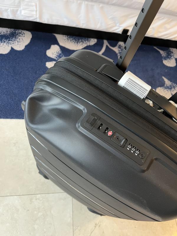 I have the intl size carry-on and LOVE it. Recently purchased the regular carry-on size for my sister. She likes the ability to expand the bag. The Outline Pro luggage is a must have. It rolls easily. And appreciate the various handle heights. I use the combination lock for every trip. So far, it fits seamlessly into more than 10 overhead domestic and international airline bins. Given the recent news stories about portable batteries, I havent used the charging capabilities yet. 5 stars all around!