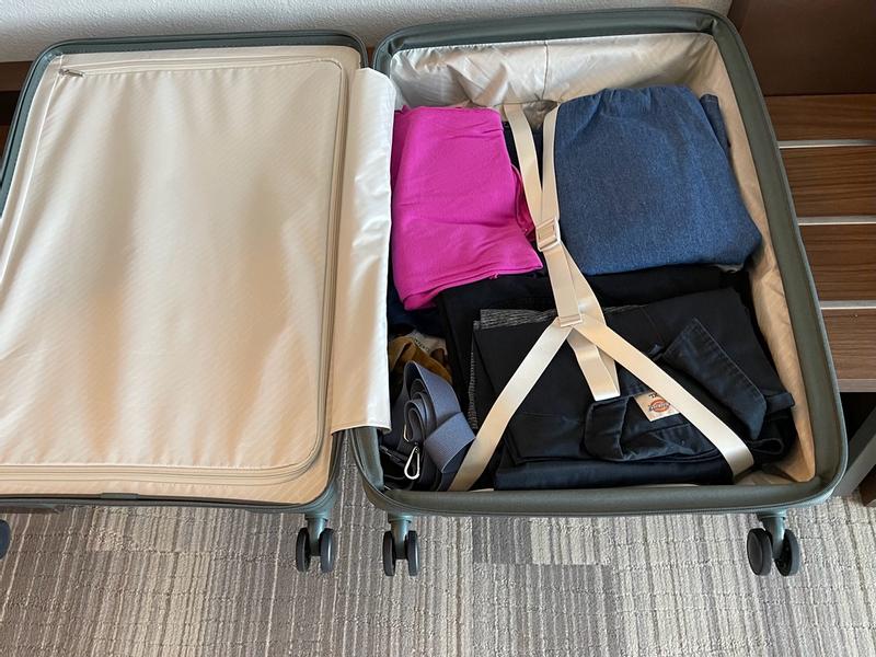 I haven't used this yet - but - I LOVE the front open option! And to also have the regular open option is just an added plus. It is well built, spins beautifully on carpet and non-carpet, and comes with packing cubes. For me this is the unicorn suitcase that has all the benefits of both hardside and softside luggage.