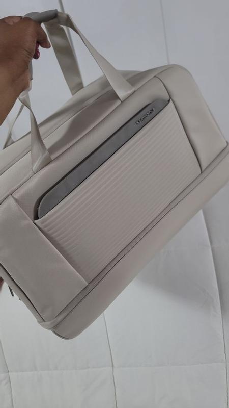 The travel bag was so convenient on my recent trip. I flew out for a 5-day trip with the travel bag. It had enough room to fit everything I needed for the whole trip and still fit in the overhead bins that were smaller than the standard size. The bottom shoe compartment and the sleeve to fit around a luggage handle were particularly convenient. (I flew with people who checked bags.) Throughout the whole trip, the bag was easy and comfortable to carry around. By the time I came back home, it was still in great shape. I will definitely use it again on future trips.