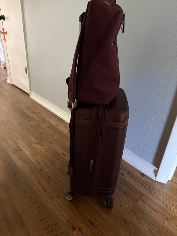 Getting ready to travel with it for the first time. First, it is very stylish and well made! It is the perfect size for carry on/under-seat. We will be in Europe and many of the airlines now have become very strict on personal item size. I have just packed it and I am able to get everything I need in it along with my overhead carry on bag - I am all set! I love the "square" bottom. It does not slouch so it is easy to access everything. The slip on strap to use with my wheeled luggage is a back saver. I am very happy with this purchase.