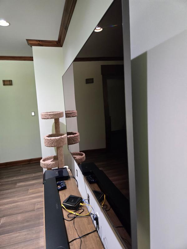 The sound bar is perfect makes movies more enjoyable now . We are very pleased with our latest Samsung purchase. Everything is just over all better and we got it just in time for our scary movie better . It is a must buy!