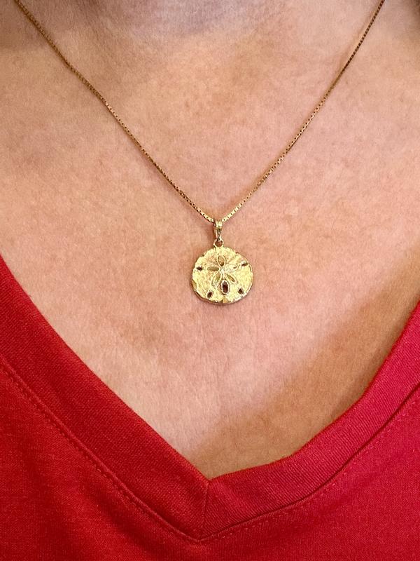 My husband got this for me for Christmas as I’ve been wanting a round gold medallion. I think wearing it, it is the perfect size to wear all the time. I love that it’s a sand dollar, makes it more interesting. He got it during the great Christmas sales, so even better!