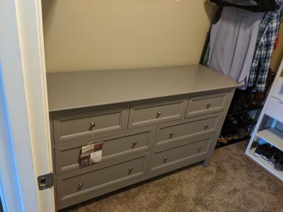 Beautiful furniture. However, horrific smell/odor which my clothes are now absorbing. I opened all the drawers and kept bedroom window open for two days in an attempt to air the dresser out. It didn't work. Very sad and disappointed because the furniture looks beautiful. I am hoping to be able to exchange this set for something else.