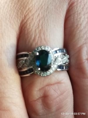 This ring is sparkly and eye catching! It looks better in person than on this website and I found it in a store. The smaller sapphires are a bit lighter than the main stone, but it's a very nice ring. I spurlged on this as it was a cheer me up gift for myself bc I have had to wear a multiple finger splint. I bought this to wear on my middle finger as that is the one that requires the splint's stability. Hopefully the ring will bring me good luck so I won't need surgery. Actually, the therapist who made this splint was the one who suggested that I wear a sparkly ring on this finger! Well, I didn't have a ring to fit this finger, so I did buy this one. It is also my birthstone and I'm glad I did splurge, bc I am worth it!
