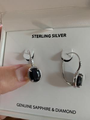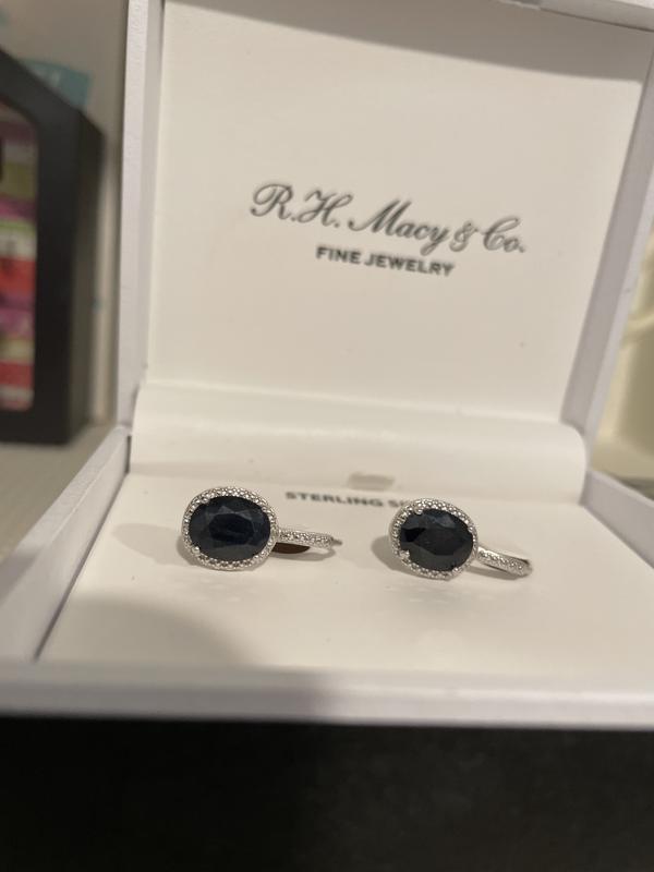 I was very disappointed with these sapphire earrings. If there are any diamonds I couldn’t find them. I received a pair that must have been returned because there were no tags on the earrings.I hope Macys will take them back for return.