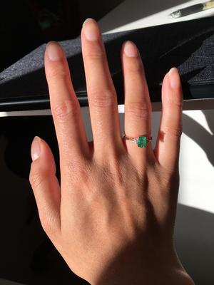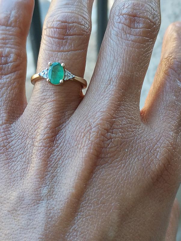 Well made ring. Cute and dainty. The emerald has an inclusion but still looks pretty. I wear a 5.5 size and the band is a bit flimsy. Might not worth the money but I will keep it as it is dainty and versatile.