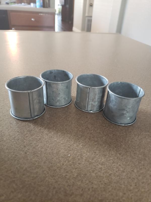 Galvanized napkin rings fit the bill for my “farm house” look table setting. It goes perfectly in my dining room as well as the patio. They are simple, yet meet the purpose.