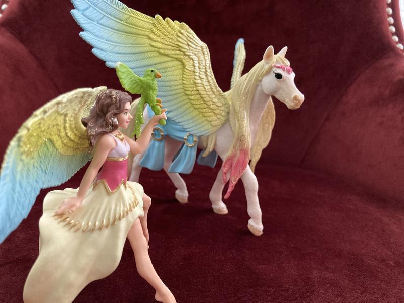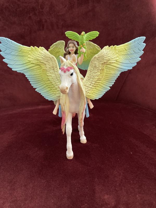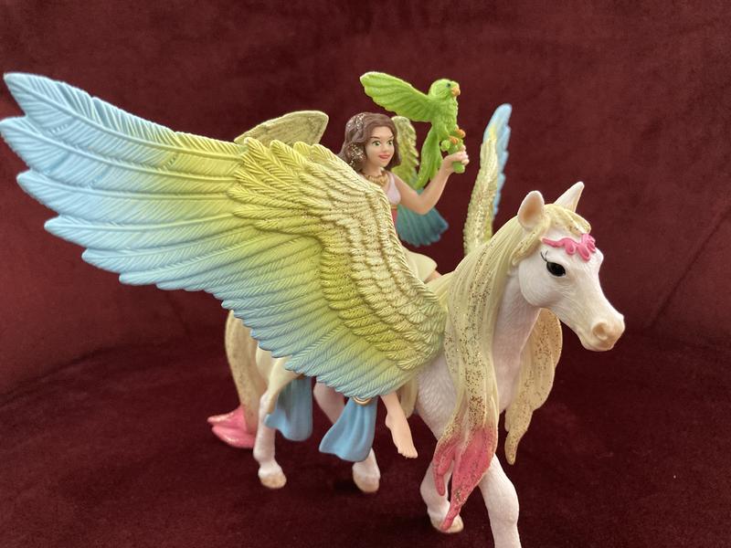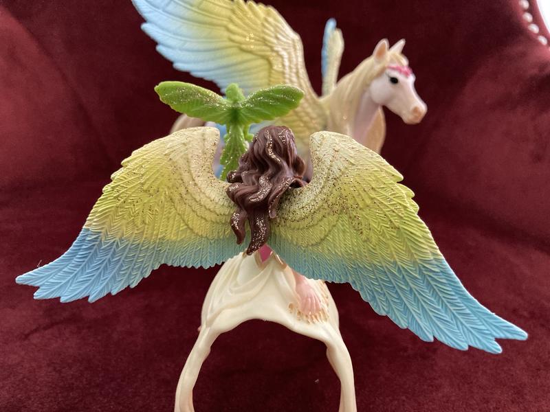 Great addition to my daughter's BAYALA collection. Note: another reviewer erroneously states that the wings of this Pegasus move. They do not move; the wings are stationary (unlike the Glam Owl, Winged Lion, and Phoenix, which all have movable wings). The fairy's left arm moves, and the green bird in her hand is detachable.