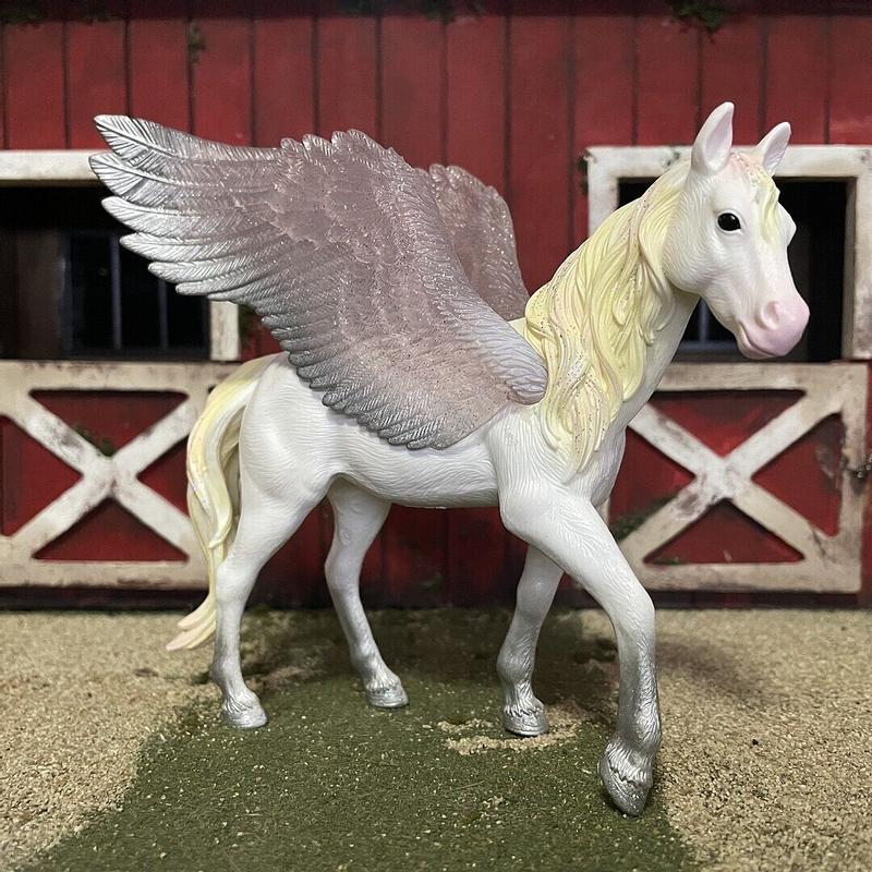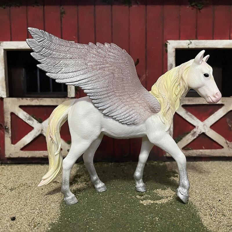 The Sunrise Pegasus is a beautiful and magical figurine with stunning pastel colors and delicate details. Its wings and flowing mane give it a graceful, dreamy look that really stands out. The quality feels solid and well-made, making it great for both play and display.
