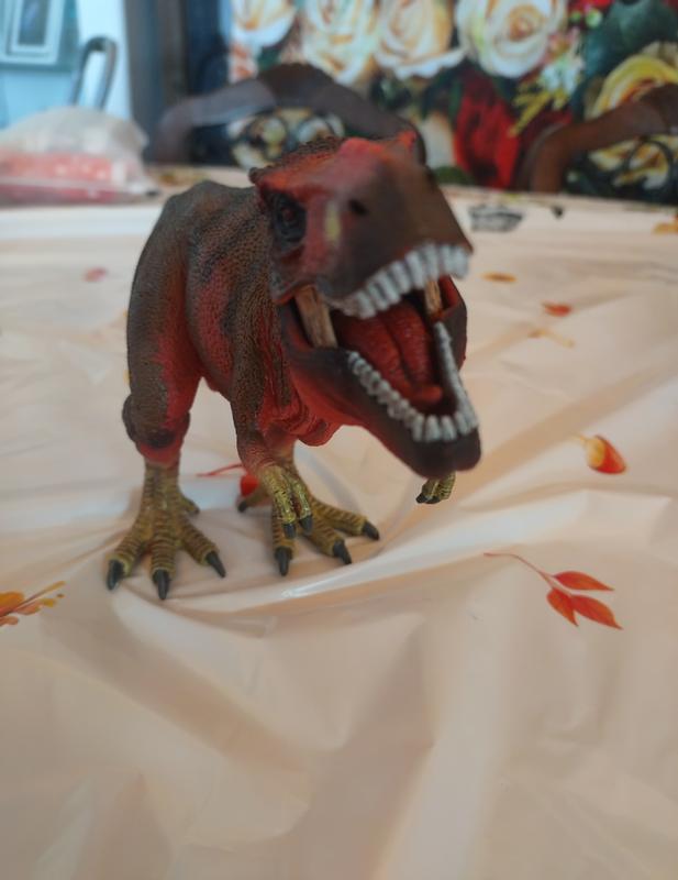 Purchased this for grandson, age 5, as reward for good behavior as he "learns to share" with younger brother, nearing age two. As with with all figures in this collection, the Red T-Rex is sturdy, well-designed & beautifully painted. We were especially delighted when we first opened the packing box and the youngest boy said "dinosaur roar." This was the first time he uttered a two-word sentence! The older boy was over-joyed to discover the figure's articulated jaw and was quick to point out how detailed the mouth cavity is displaying gums, teeth and tongue. The older boy enjoys sharing his dinosaur knowledge with his younger brother and his parents love these teachable moments.