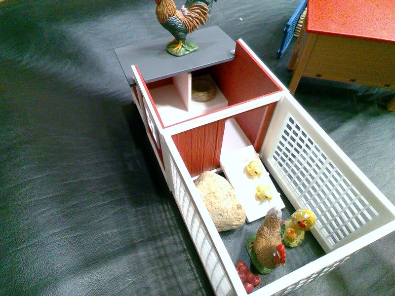 My son asked for this for his birthday! Our neighbors have a chicken coop and real life has inspired play in many ways. We had a grizzly bear attacking coops in our area and next thing I knew this coop was set up with a grizzly stalking on our bench.