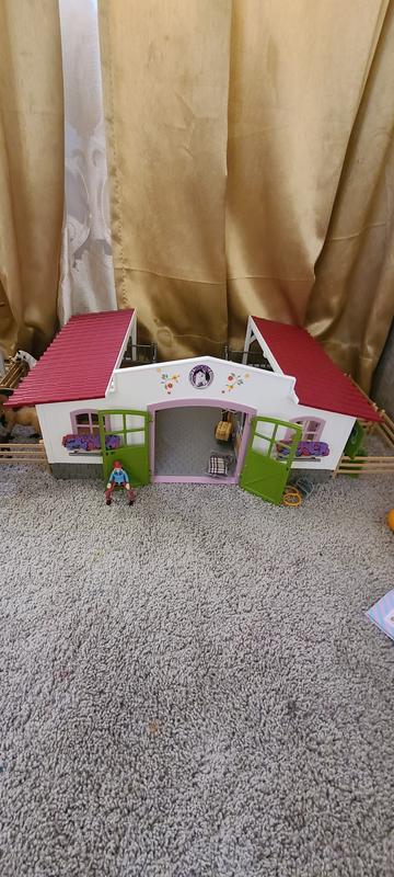 Love this stable with horse, fencing and accessories! Allows for creativity in set-up and lots of umaginative play!