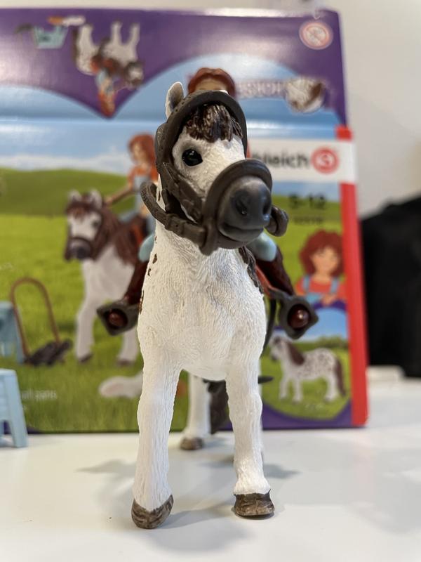 Pros: amazing and cute and very sturdy and feels unbreakable, will keep your kids entertained for a good while by itself or with other schleich toys. Cons: the price, and how many things come in the box, there is no halter included in the box but other than that it’s good!