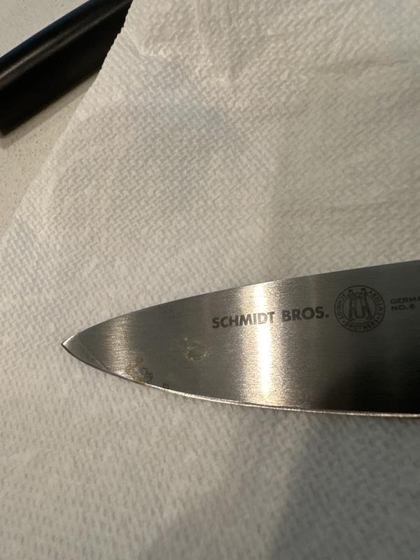 Hi Gaylynn, We're sorry to hear about the broken knife - our CS team is getting in touch with you to get you a new replacement! Thanks, Schmidt Bros.