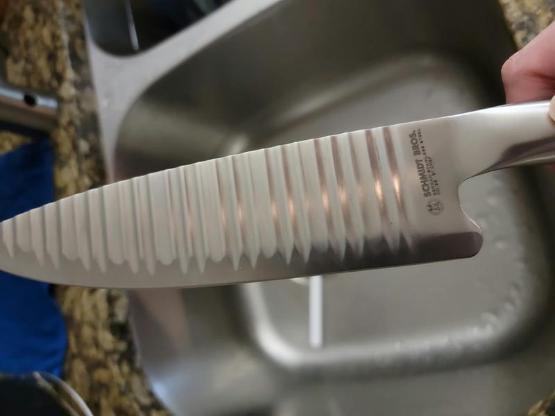 This is a great knife. For the cost it is an absolutely incredible knife. Comfortable, beautiful and sharp. I grab for it over numerous more expensive Japanese options daily.
