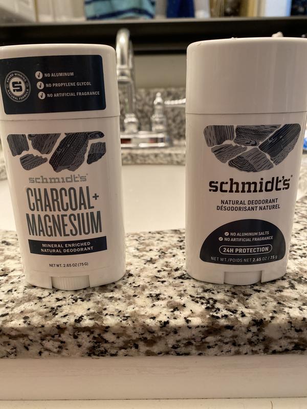 The initial transition to natural deodorant takes a few days so do it on a weekend rather than Monday morning. As your body rids the toxins deposited from regular deodorant use, it can smell. I promise it goes away for good after 48-72 hours. And you’ll never look back. I say this to set your expectations realistically so you don’t second guess your good decision to switch. This charcoal magnesium is my favorite scent after trying few scents. I spent years using prescription deodorant and considering Botox injections from over perspiration. All of my issues seemed to be resolved by making the switch to Schmidt’s natural. Even though it’s not an antiperspirant I find that it no longer matters. Gentle enough for my sensitive skin. Gets the job done without clogging my body up with heavy metals and toxins. I also prefer ordering directly from the website to ensure freshest products, and it’s usually cheaper than in store!
