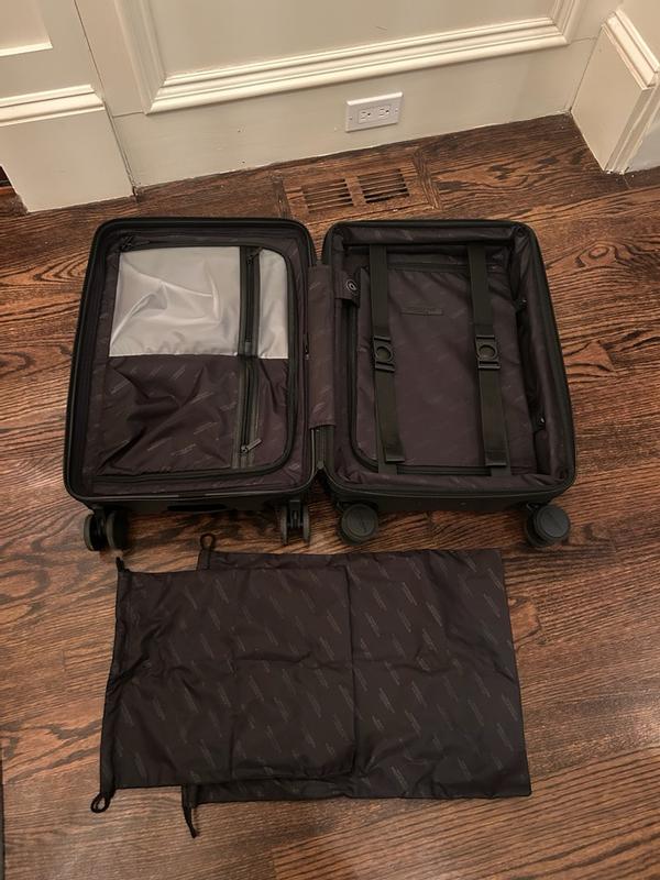 This is the coolest suitcase I’ve seen! It has so many features—the laptop compartment, the wing shaped handle, expandable zipper, a wet compartment, it comes with laundry bags, and it even charges your phone!!! Everything is incredible quality, with many pockets and compartments, and even nice leather touches. It’s lightweight but sturdy, and the wheels truly glide. It has a TSA approved lock, and a charging port that would connect to a power bank on the inside with the interior cord, that even has two attachments! I couldn’t ask for more for a suitcase, and this one goes above and beyond!!