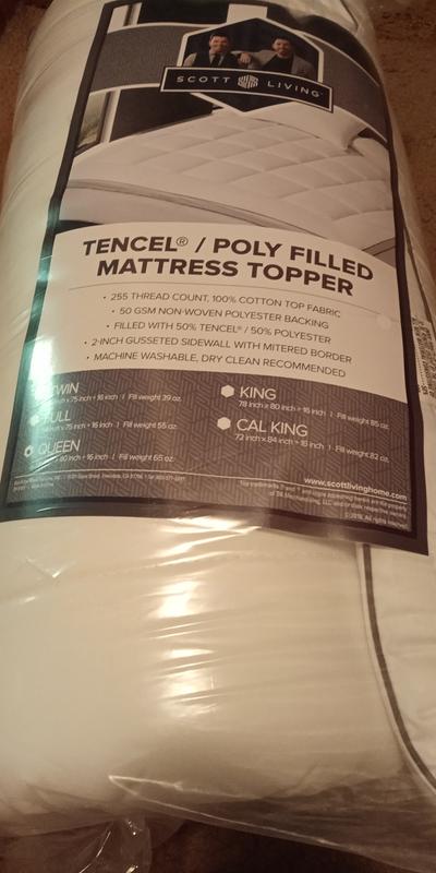 The Scott Living tencel and poly filled mattress topper is comfy and cozy! I put it on the bed when I recieved it. I'm happy it is large enough to actually go over the entire mattress. You know, because some of those mattress toppers you get, you really have to strain and stretch for it to fit and then by morning it's all hanging off the corners because it's come loose (I hate that!). It fits snugly and neatly to the mattress and is very comfortable. I also love the fact that it has the option to be machine washable!