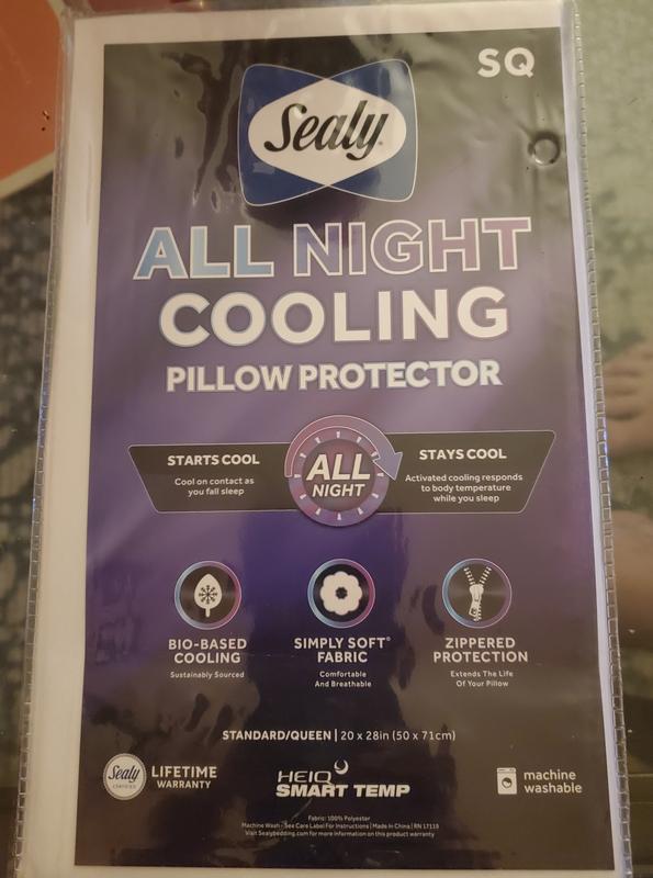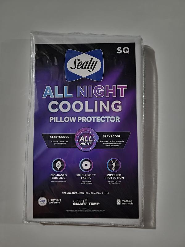 The sealy all night cooling pillow protector is great for anyone who is a human heater. AKA sweats a lot when sleeping. This protector keeps the moisture off your pillow leaving a fresh smell when you awaken from the good nights sleep you’ll get using this. The only thing I didn’t like is that it’s white. I love this pillow protector and recommend it!