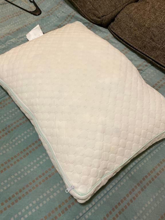 The pillow contours to my head and keeps cool all night long. I have been sleeping better than before and wake up refreshed. My only complaint is that the pillow is smushed after and I have to fluff it to get it to separate and bring life back. Otherwise it is perfect!!