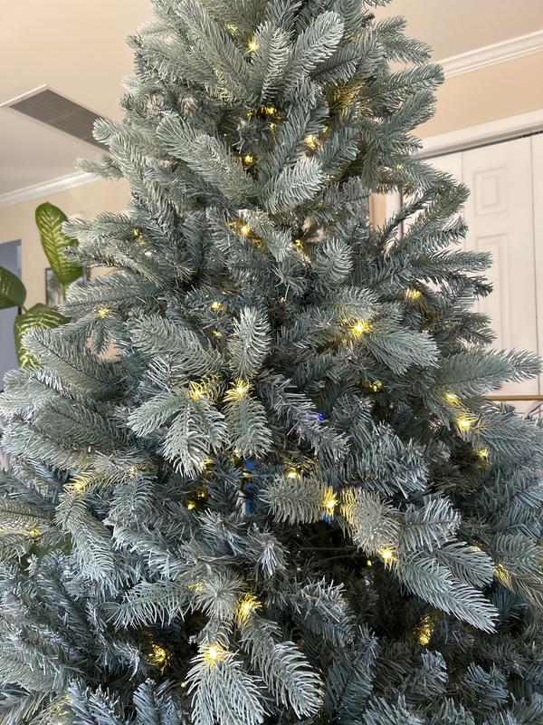 SeasonalSpruce 7.5' Pre-Lit PE Mixed PVC Tree with Metal Standing, 2450 Tips, 500 Warm LED, EZ-Connect, Remote, Storage Bag
