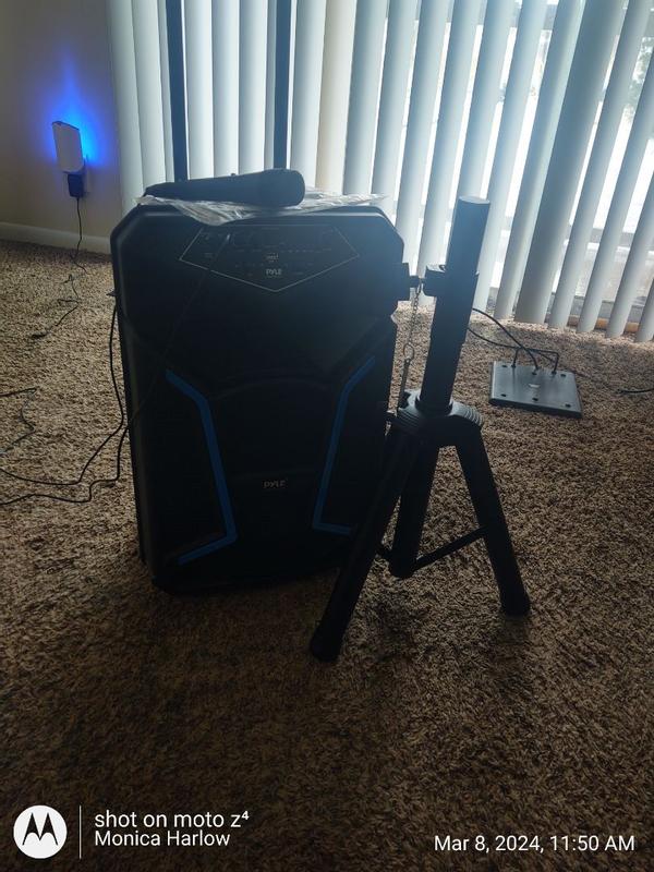 The speaker system was easy to set up and took less than 30 minutes. Came with flashing lights and a microphone. Great quality for karaoke or to play music! Satisfied with the product! The size is great and can be moved easily as it has wheels attached to the back. Additionally, the stand can be adjusted and sits on a tripod. The cord of the microphone is long and durable if you want multiple people to use it at once. The lights feature multiple colors and flash according to the music played. The sound quality is great and can be adjusted based on your preference. Product is not too heavy so it can be moved by one person. Great product!