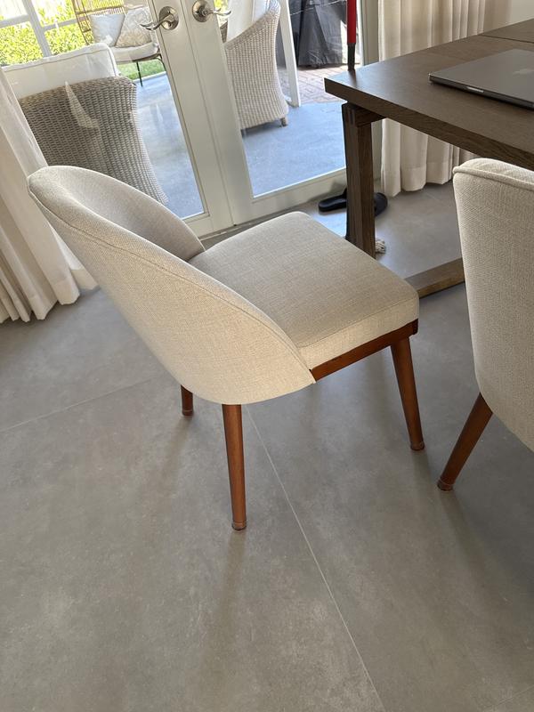 Great dining chairs. They look just as good as on the picture. Almost none of them were even on the floor but they come with adjustable feet for that very reason.