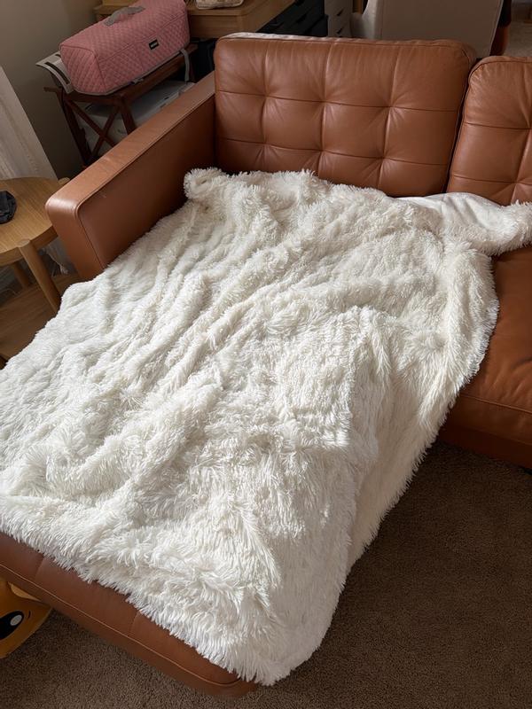 Wow! What a wonderful throw! Both sides are super soft and it’s just the right size to cuddle up on the couch. The color is bright white and I love how shaggy it is. The heating feature is the best part. One simple button to turn on and off as well as temperature control. Couldn’t be easier!