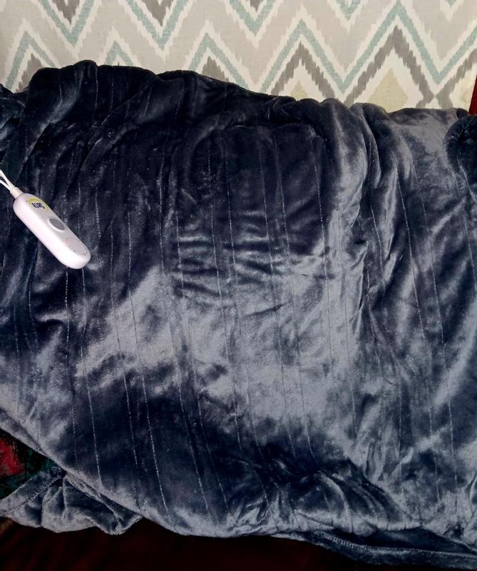 Loved the thin but fluffy weight of blanket...super soft. However it is more like a warm glow over you instead of a real heat. It only gets fairly warm near the plug in area where the cord attaches to the blanket.