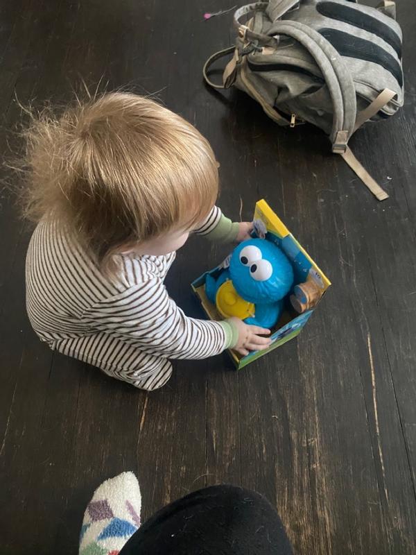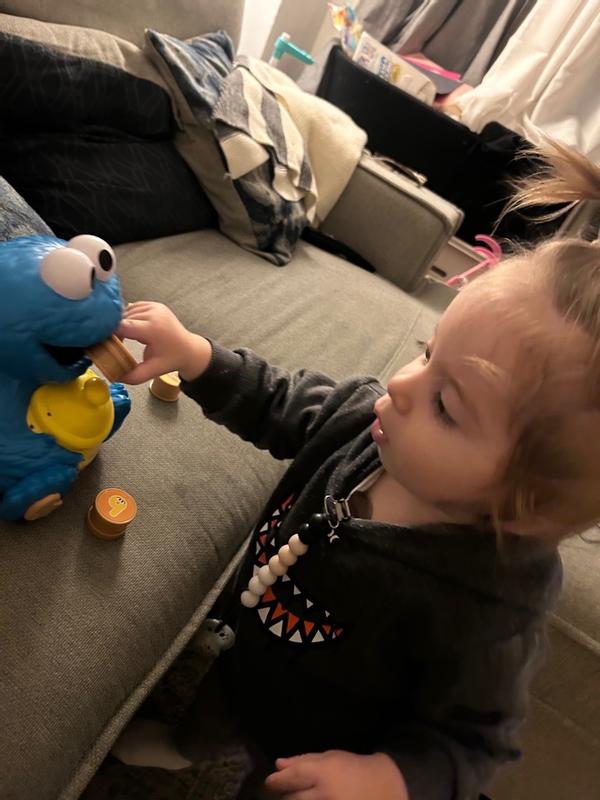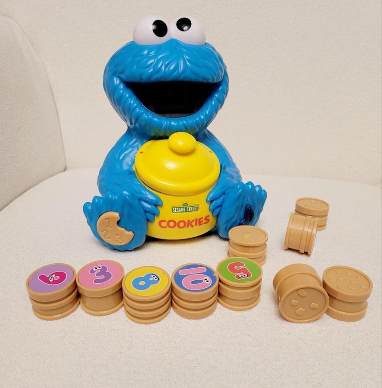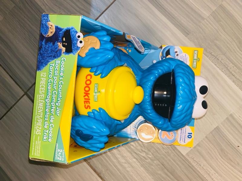 This Sesame Street Cookie’s Counting Jar is cute! It’s a wonderful learning toy for a child starting to learn numbers and counting. It’s simple and easy to use; feed the Cookie Monster cookies and it’ll count them out loud. The Cookie Monster plays music and lots of phrases and sounds as well! It’s a great engaging toy which keeps the child busy! The toy is easy to handle for little hands. Simply take out the cookies out of the jar when ready to play again and start the fun learning all over again!
