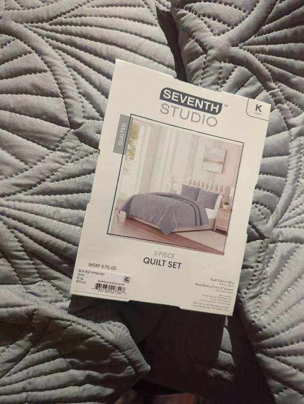 Seventh Studios 3 piece quilt set is the perfect “blanket” set for the warmer weather coming up. It’s light and airy so I’m not able to use it now when the nights are still chilly here. The sea shell pattern and grey color is appealing and matches well with my bedroom set.