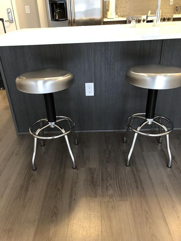 I could not be more pleased with my new Seville work/bar stools. The brushed finish and black center are distinctive and they are very comfortable to sit on. I might need to order a third.