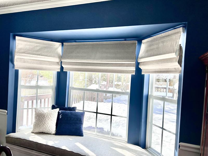 Very happy with these shades for my bay windows. Linen fabric has a subtle texture and the color softens the window while providing UV protection when necessary. Exactly as described in terms of size and very easy to install and maneuver. I like them so much I just ordered the same shades for another room.