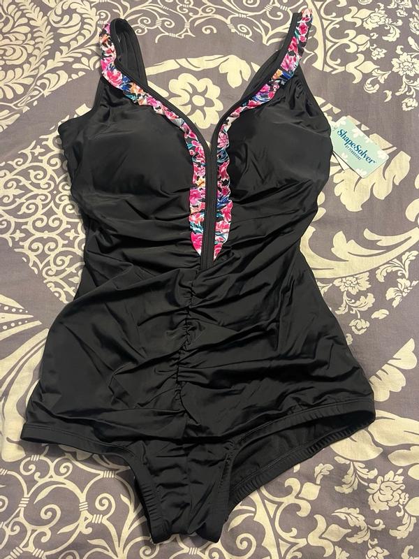 Women's ShapeSolver Ruffle Neck Girl Leg One-Piece Swimsuit