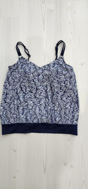 I really love the fit of this tankini bathing suit. It has a built in bra that fits very comfortably. I like the way it fits and goes well with shorts also. Easily can be worn as a top also. Very well made bathing suit top.