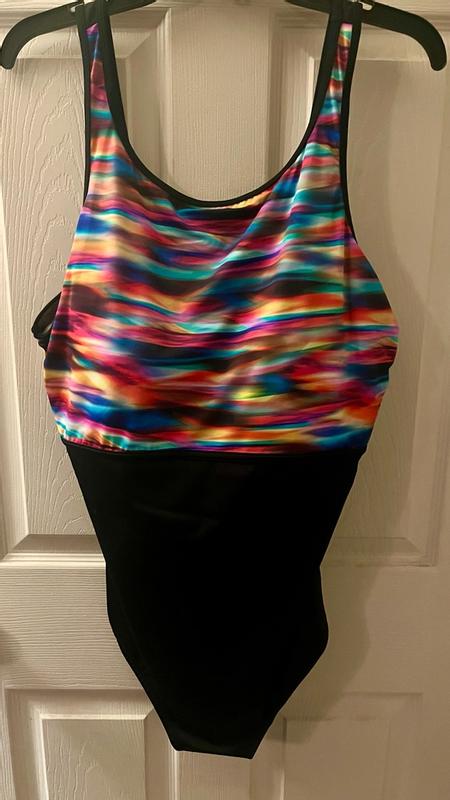 The first thing I noticed when I opened this package was the bright and vibrant colors. I was easy to step into and to put on. The back covered everything and it wasn’t high up in the front so I don’t have to worry about showing anything there. I’m a plus size woman and I feel confident about wearing this to my next beach vacation this summer. I also think I can move around I. The pool and swim and not have to worry about it adjusting in the wrong way. It is also heavy fabric and not to thin. And seems to have great durability. Great bathing suit!