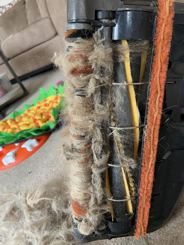 Vacuums carpet like a champ! I thought my Dyson was good…but this vacuum pulled a LOT of dirt out of my carpet! I also love that hair does not get wrapped around the roller! Only downfall is that the hose is REALLY short and the attachment for the hose keeps falling off the storage spot while vacuuming (when not in use)